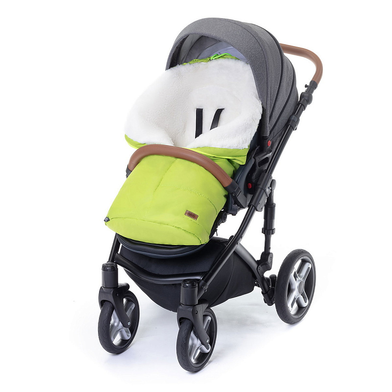 Наиболее удачным является сочетание конверта с меховой муфтой NUOVITA SIBERIA из одноименной коллекции.