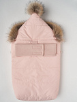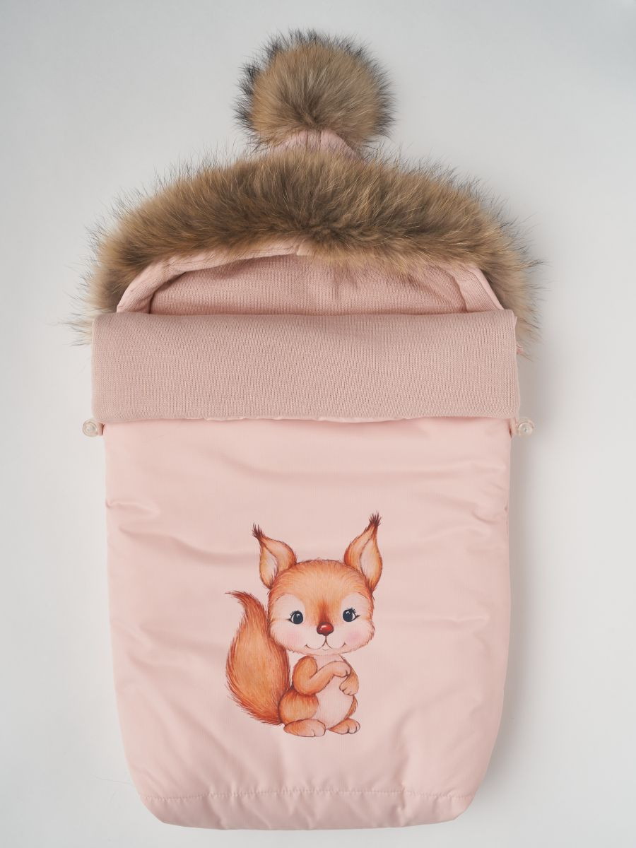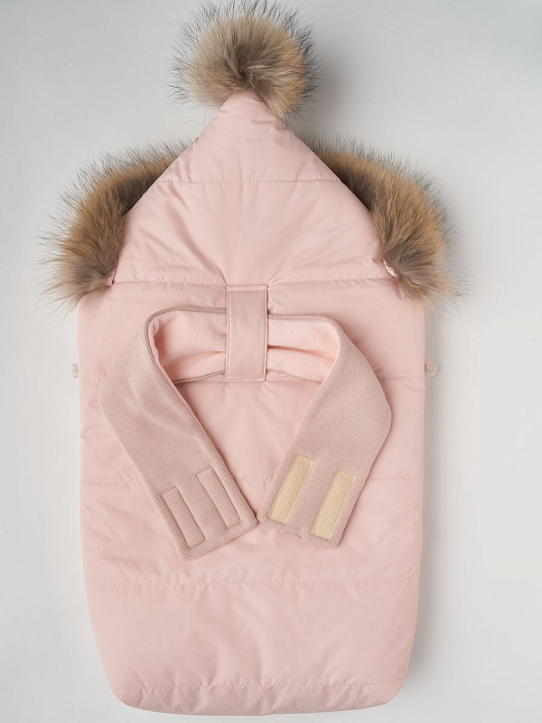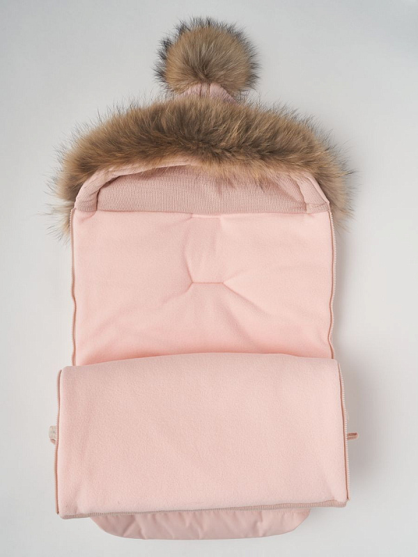 Конверт-кокон Little Star на 2-х молниях с натур опушкой и помпоном плащевка, флис белочка, розовый