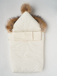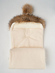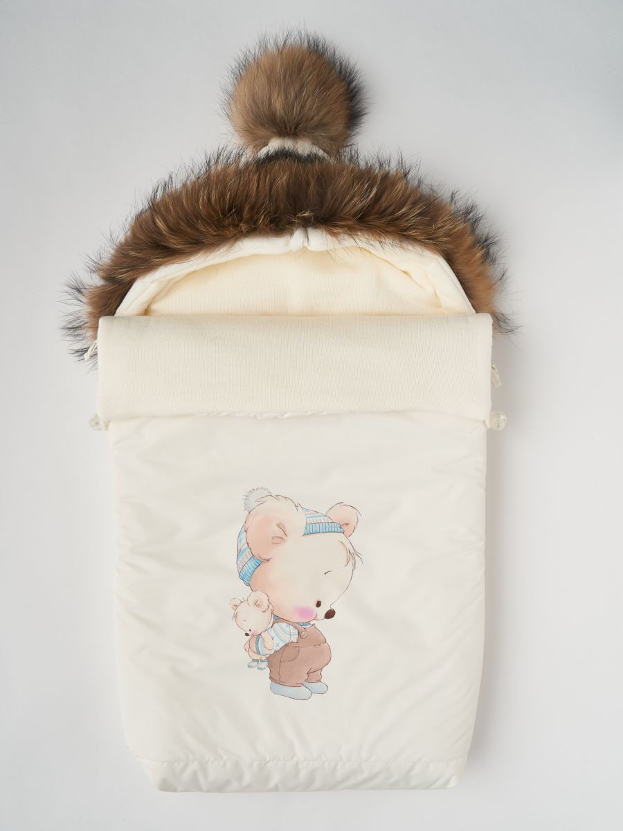 Конверт-кокон Little Star на 2-х молниях с натур опушкой и помпоном плащевка, флис мишка малыш, крем