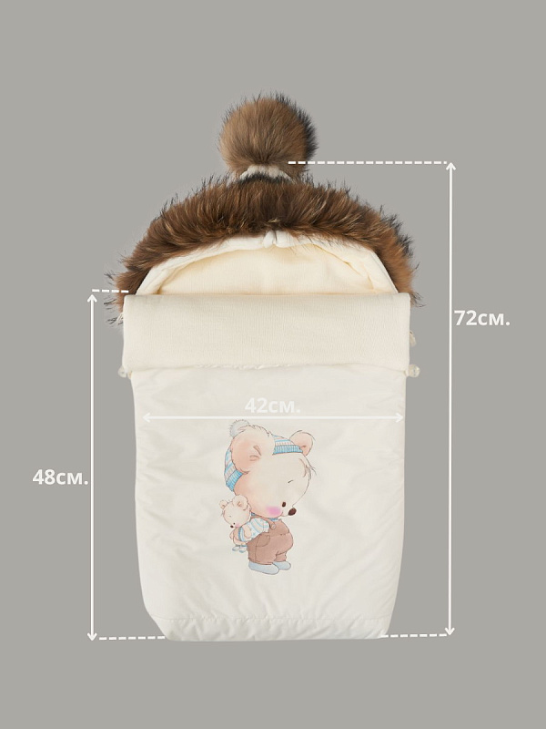 Конверт-кокон Little Star на 2-х молниях с натур опушкой и помпоном плащевка, флис мишка малыш, кремНет оценокХарактеристики