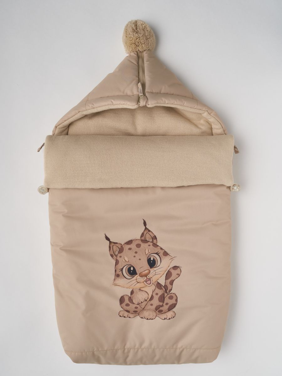 Конверт-кокон Little Star на 2-х молниях с вязаным помпоном плащевка, флис рысенок, бежывый