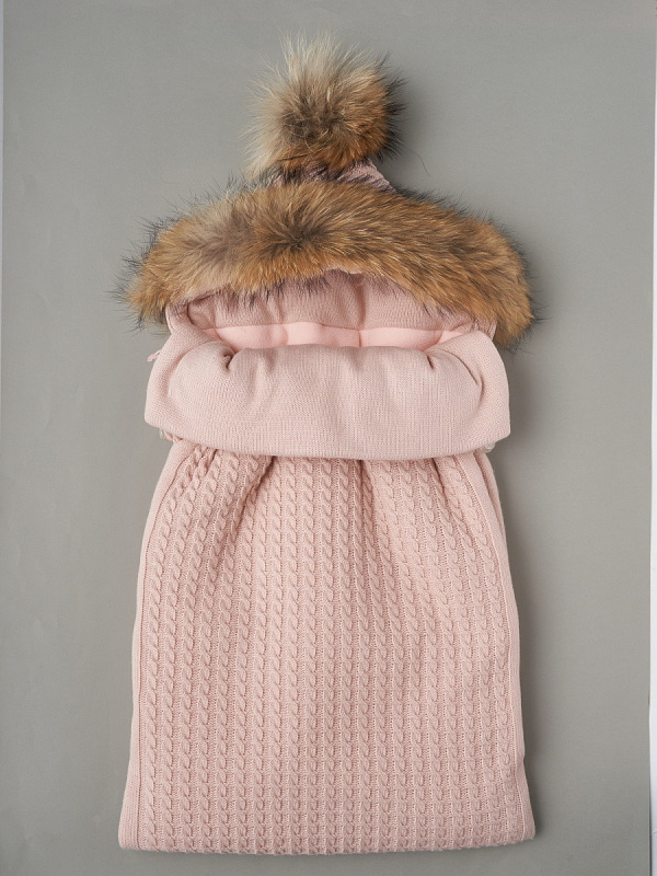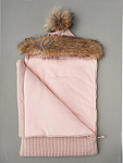 Конверт-Кокон Little Star с натуральной опушкой и помпоном на 2-х молниях 33177 пудровый