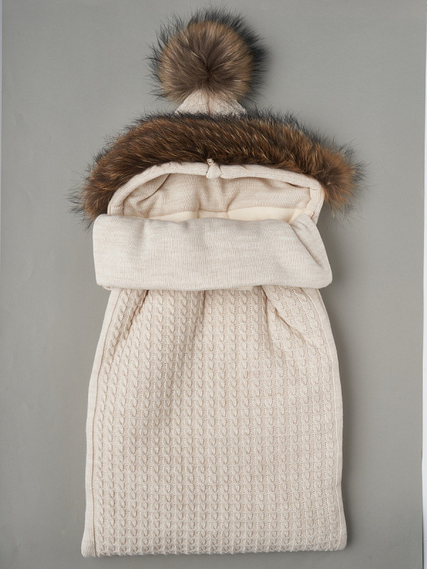 Конверт-Кокон Little Star с натуральной опушкой и помпоном на 2-х молниях 33177 пудровый