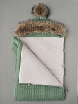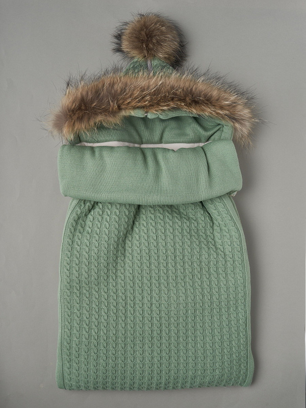 Конверт-Кокон Little Star с натуральной опушкой и помпоном на 2-х молниях 33177 серо-зеленый
