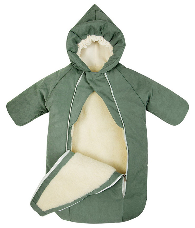 Меховой конверт-комбинезон «Айс» на натуральной овчине согреет вашего малыша в холодную зиму при выписке из роддома и повседневной прогулке.