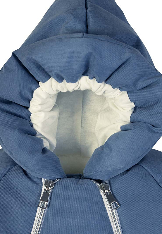 - Капюшон на резинке и конструкция ворота защитят малыша от ветра;
