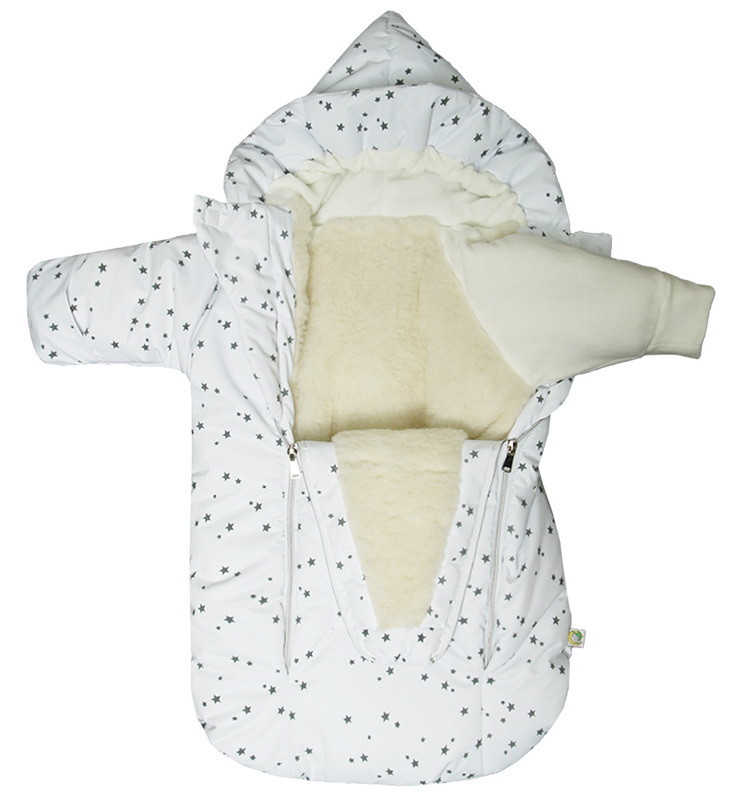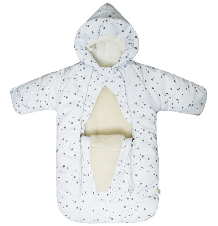 Меховой конверт-комбинезон «Айс» на натуральной овчине согреет вашего малыша в холодную зиму при выписке из роддома и повседневной прогулке.
