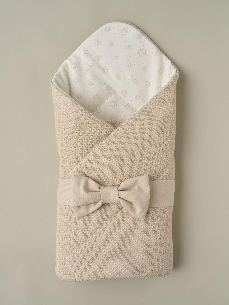 Конверт-одеяло на выписку с лентой весна-осень Little Star 3134 бант, экрю, короны