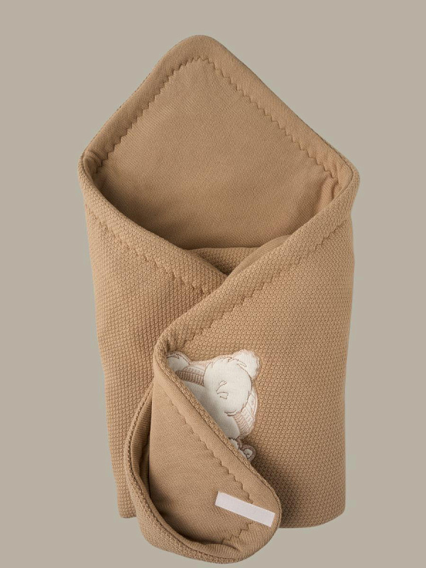 Конверт-одеяло на выписку вязаный зима Little Star 3133 мишка малыш, мокко