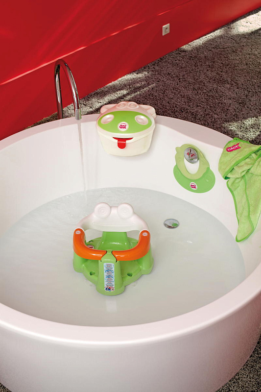 Корзинка для ванны Ok Baby Muggy - аксессуар, в который поместятся гигиенические принадлежности, игрушки и другие необходимые вещи малыша. Изделие можно закрепить прямо на ванной для взрослых и бросать туда мокрые предметы: вода стекает через отверстия внизу. Корзинка герметично закрывается.