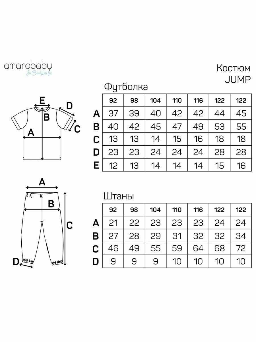 Бренд AmaroBaby представляет новую линейку детской одежды-костюмы серии JUMP. Костюм для мальчика и для девочки изготовлен из натуральных тканей, материала премиум качества. Состав костюма детского: 95% хлопок, 5% лайкра. Мягкий, уютный и стильный костюм легко будет применим для прогулок, сада и активного отдыха. Летний костюм прост в уходе, выдерживает максимальное количество стирок, не изнашивается и не теряет форму. Костюм для сада имеет универсальные расцветки, которые подойдут как для мальчика, так и для девочки. Детский костюм сделает образ вашего ребенка стильным и интересным, а также отлично дополнит гардероб любого малыша. Изделие соответствует Российским и Европейским стандартам качества.