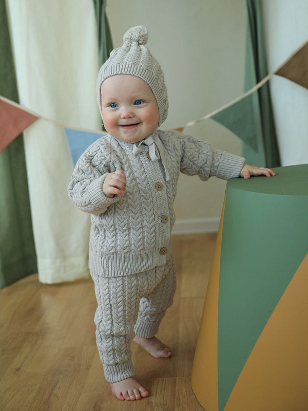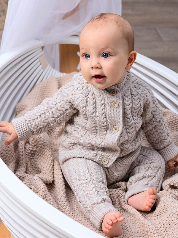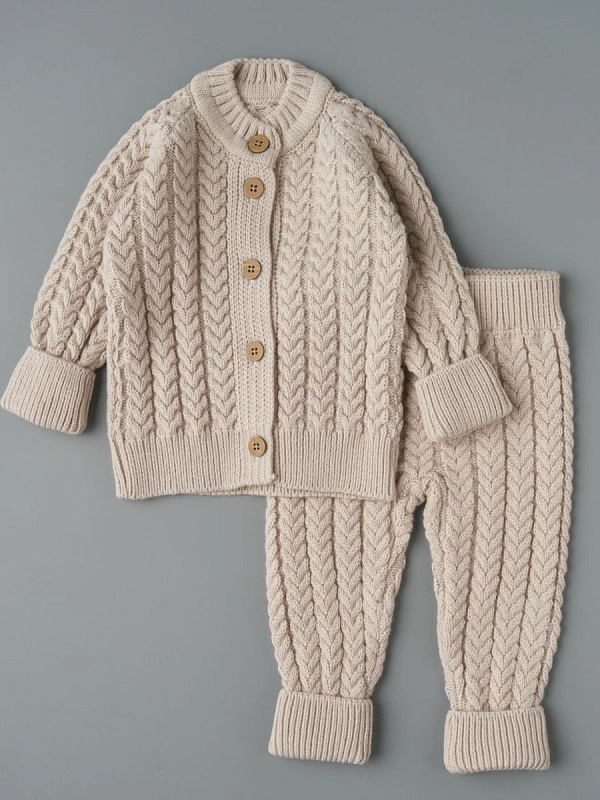 Детский вязаный костюм Little Star Косы – будет находкой для мамы в любое время года. Вязка детского комплекта выглядит стильно, имеет четкие линии швов и сгибов, благодаря чему комплект выглядит модным и повседневным. Натуральный хлопок в составе обеспечивает ткань отличными терморегулирующими свойствами, мягкой текстурой, хорошо дышит и сохраняет тепло.