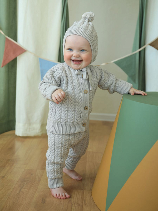 - Фактурная вязка, лаконичный крой и универсальный цвет подойдет как мальчику , так и девочке
