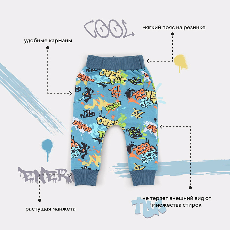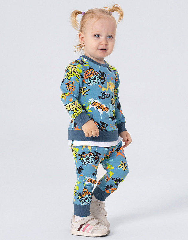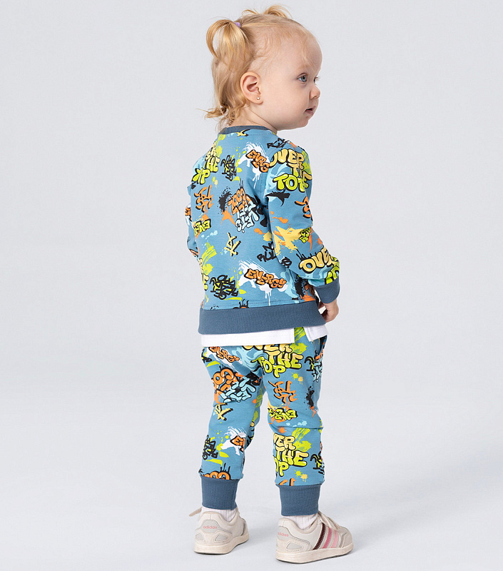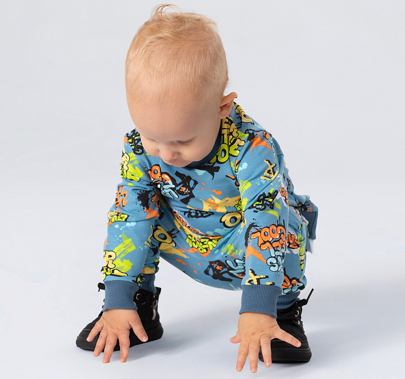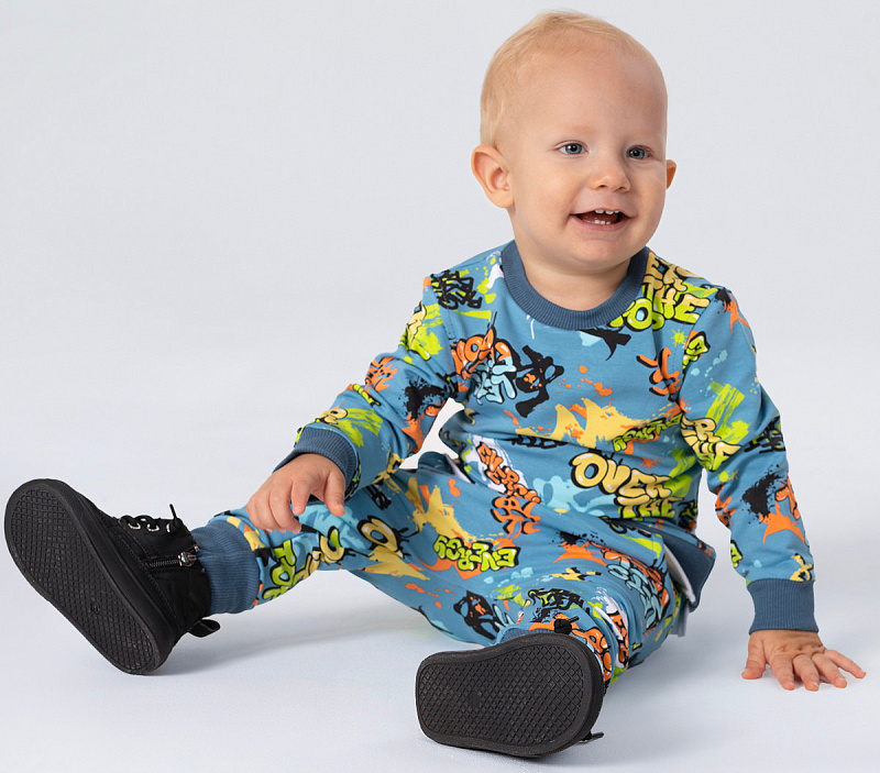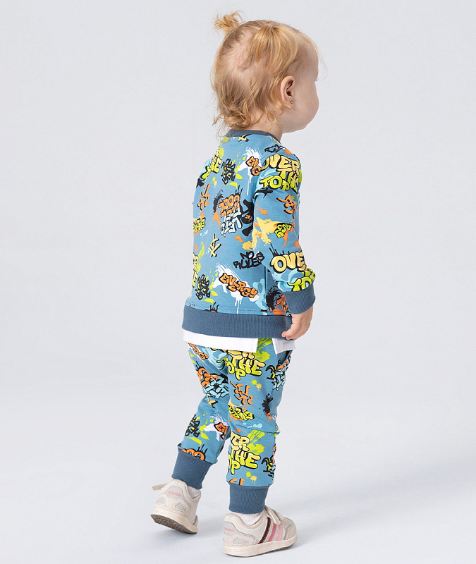 Стильный костюм RANT BASIC COOL подарит малышу невероятный комфорт. Модель покорит вас: дизайнерским принтом, лаконичным исполнением, премиальными тканями, растущей манжетой на штанишках.