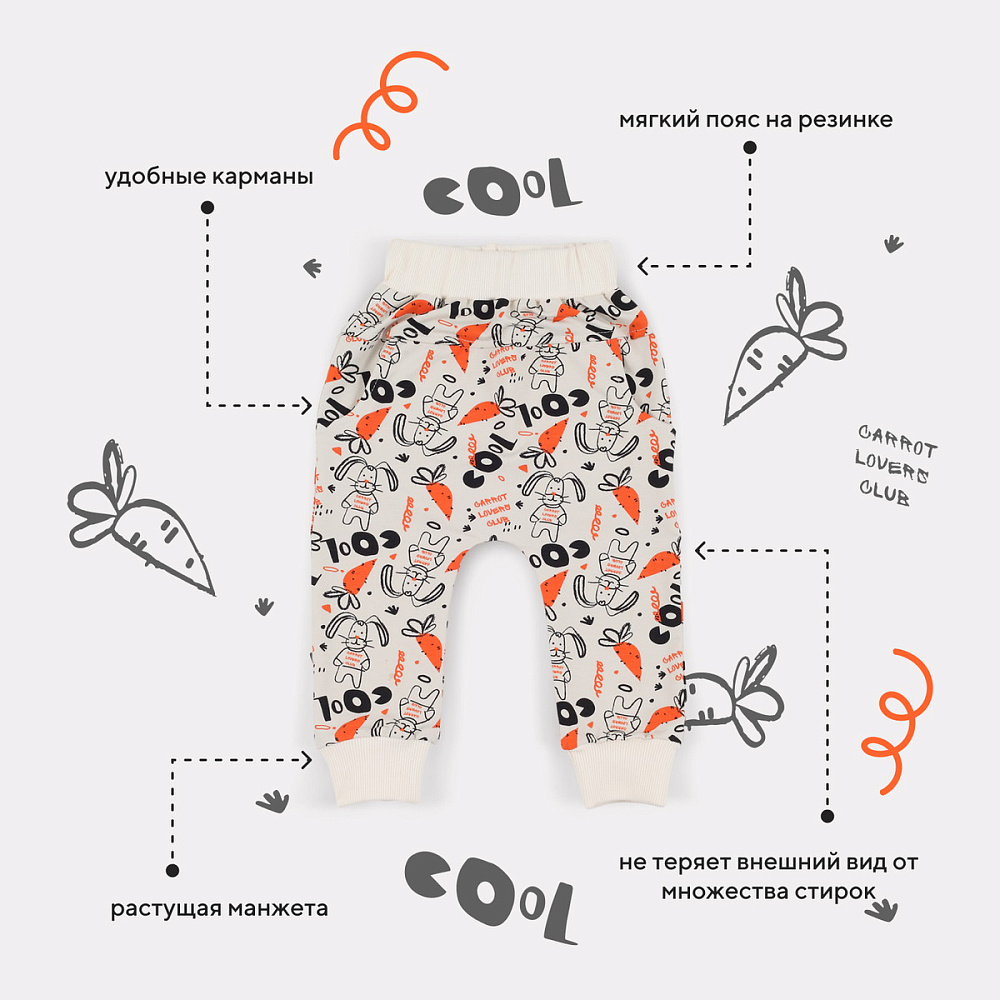Стильный костюм RANT BASIC COOL подарит малышу невероятный комфорт. Модель покорит вас: дизайнерским принтом, лаконичным исполнением, премиальными тканями, растущей манжетой на штанишках.