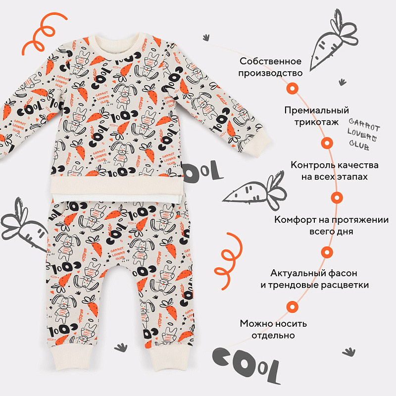 Костюм Rant basic из футера со свитшотом 166 166/2 Cool Carrot молочный 80