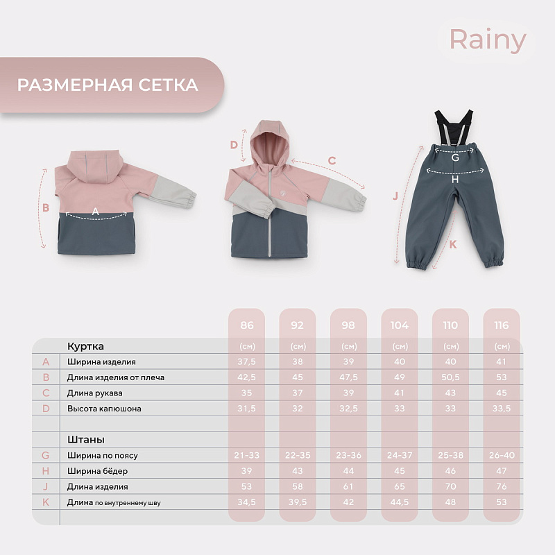 Какое детство без прогулок по лужам? Детский демисезонный костюм RANT RAINY подарит малышу невероятное ощущение уюта и тепла. Модель покорит вас: инновационным влагоотталкивающим и ветронепроницаемым материалом софтшелл, тщательно продуманными деталями кроя, лаконичным исполнением, комфортным лекалом.