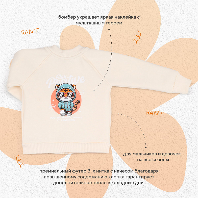 рукав реглан, которым дополнен бомбер, красиво садится и не сковывает движений ребенка