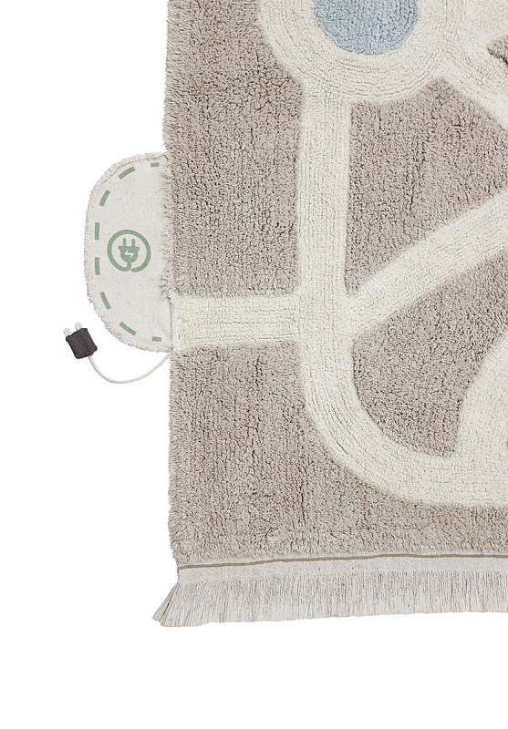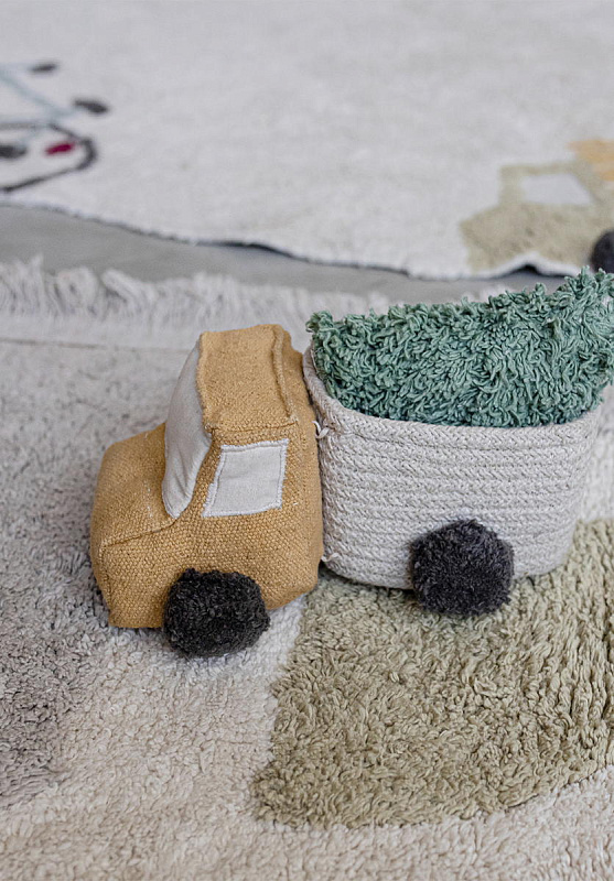 Сам ковер и все игрушки выполнены из натурального хлопка. Их мягкая цветовая гамма превращает этот игрушечный городок из шумного мегаполиса в уголок спокойствия. Простые, не перегруженные деталями и излишней правдоподобностью игрушки созданы в полном соответствии с рекомендациями детских психологов и как нельзя лучше подходят для развития воображения. Пригласите ребенка в этот чудесный хлопковый город с его хлопковыми обитателями и начните вместе бесконечную игру в машинки.