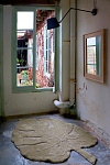 Выбивайте ковер в горизонтальном положении, разложив его на полу ворсом вниз. После процедуры соберите пыль и остатки ворса с пола с помощью пылесоса. Выбивать ковер в подвешенном состоянии не рекомендуется, чтобы не вызвать деформацию.
