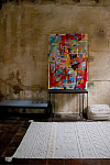 Выбивайте ковер в горизонтальном положении, разложив его на полу ворсом вниз. После процедуры соберите пыль и остатки ворса с пола с помощью пылесоса. Выбивать ковер в подвешенном состоянии не рекомендуется, чтобы не вызвать деформацию.