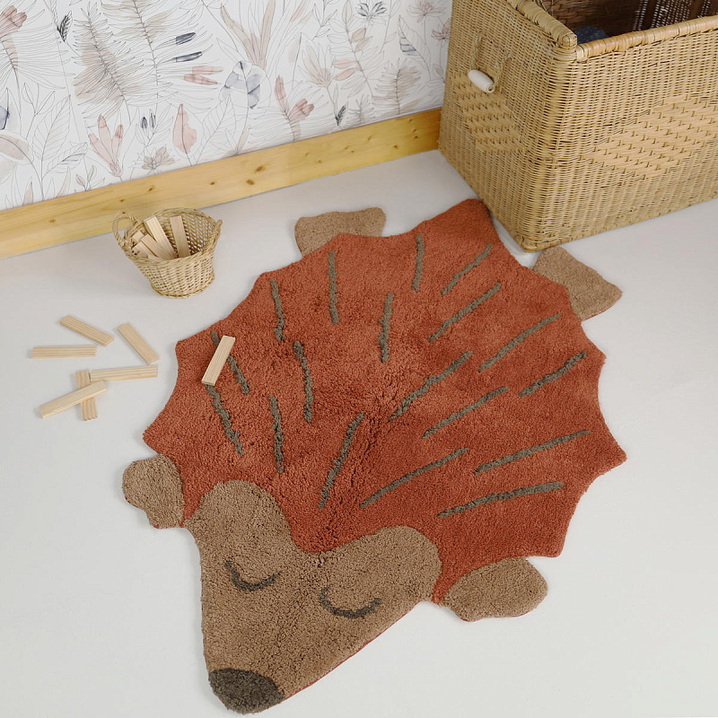 В нашей коллекции появился новый лесной житель. Ковер в форме Ежика, легкий в уходе, изготовлен из мягкого и комфортного хлопкового велюра, который будет радовать ножки вашего малыша. Теплые тона ковра Ollen позволяют легко интегрировать его в любую детскую комнату!