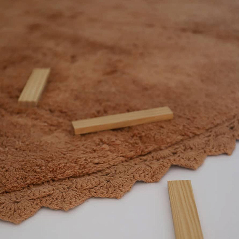 PERLA — мягкий и удобный круглый ковер. Его особенно нежная отделка с кружевным эффектом связана крючком. Новинка от бренда Nattiot!