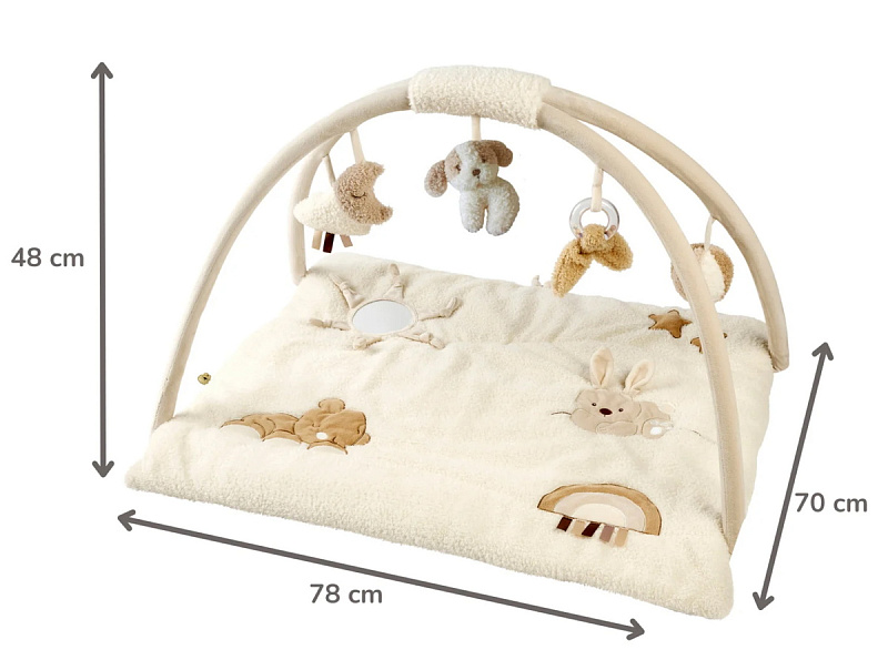 Игровой коврик Nattou с арками — идеальное место для игр вашего малыша. Благодаря толстой мягкой подкладке он обеспечивает комфорт и безопасность, а съемные игровые арки, наполненные милыми фигурками и аксессуарами, займут вашего ребенка на долгие часы. Шуршащая бумага, пищалка, погремушка стимулируют органы чувств, развивают мелкую моторику и любознательность в процессе игры. Этот игровой коврик сделает каждое исследование веселым и познавательным, как дома, так и в дороге.