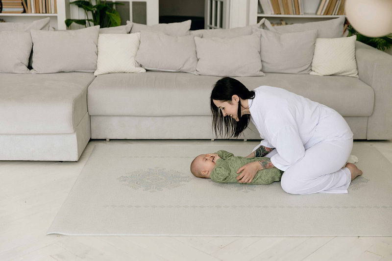 Вес ковра 9,3 кг, он основательно ложится на любое напольное покрытие и не скользит даже при активных играх.