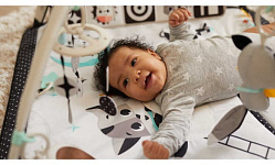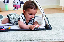 Коврик для полноценного развития и игр в первые месяцы жизни! Стимуляция зрения при помощи контрастных чёрно-белых деталей, 18 развивающих элементов и электронная игрушка для развития различных навыков. Малыш будет больше времени проводить на животике - это полезно для мышц спины и шеи. Съёмная книжка, которую можно использовать для совместной игры. Музыкальная игрушка, реагирующая на нажатия.