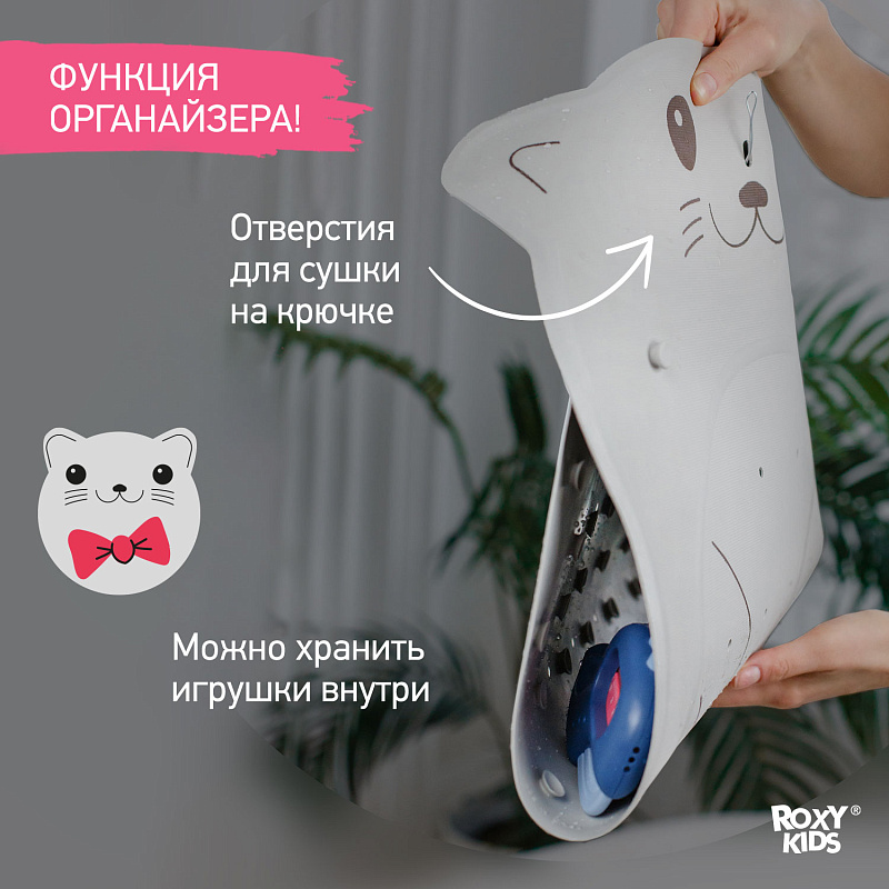Коврик резиновый для ванны Roxy-Kids антискользящий 76x45см BM-4576-CAT Кот серый