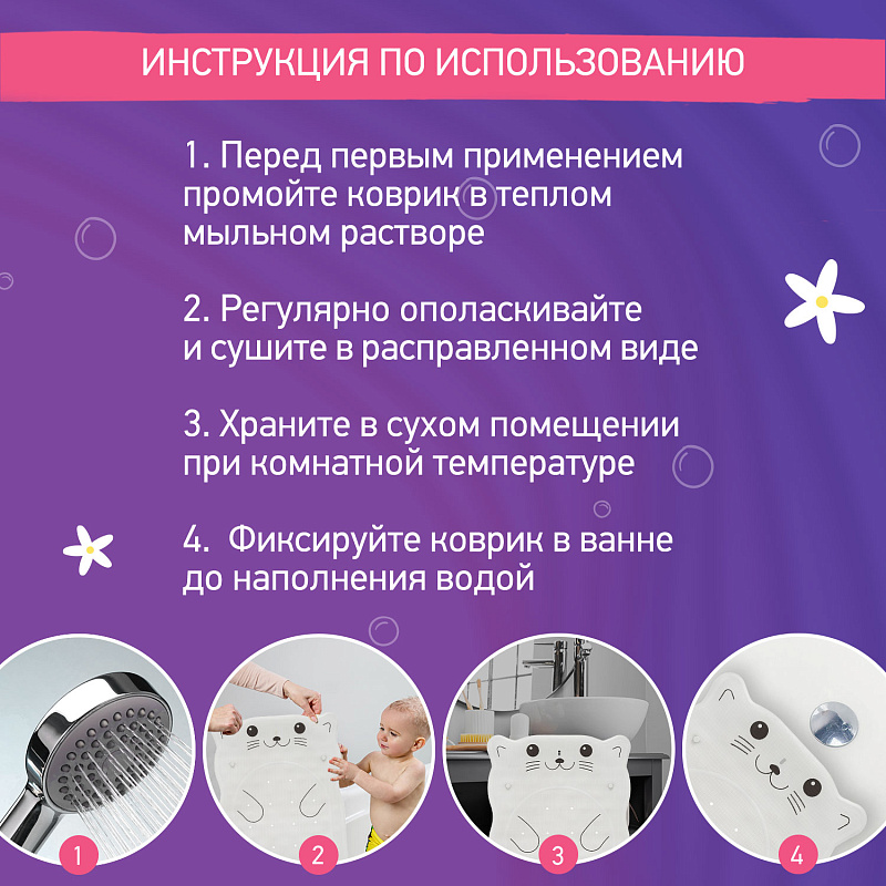 Коврик резиновый для ванны Roxy-Kids антискользящий 76x45см BM-4576-CAT Кот серыйНет оценокХарактеристики