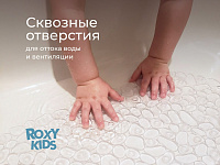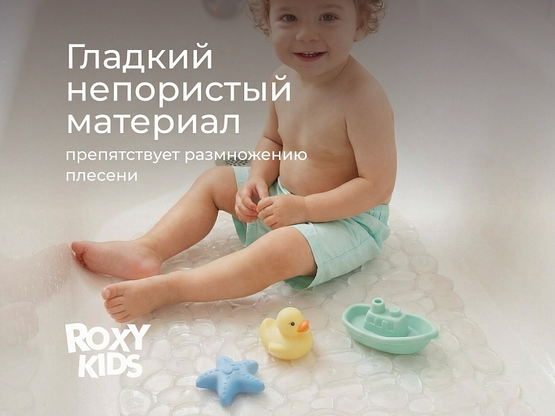 Антискользящий коврик для ванной ROXY-KIDS обеспечит комфортное и безопасное купание вашего малыша. Мягкие присоски надежно крепят коврик ко дну ванны и не дают ему скользить. Специальное покрытие препятствует скольжению ног или тела по коврику и обеспечивает массажные функции. Коврик из ПВХ полностью соответствует всем требованиям безопасности детской продукции. Оптимальный размер коврика делает его доступным для использования в любых ваннах и детских ванночках.
