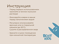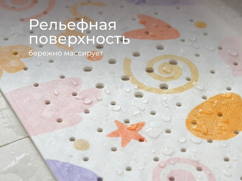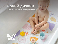 Антискользящий коврик для ванной ROXY-KIDS обеспечит комфортное и безопасное купание вашего малыша. Мягкие присоски надежно крепят коврик ко дну ванны и не дают ему скользить. Специальное покрытие с рельефными элементами препятствует скольжению ног или тела по коврику и обеспечивает массажные функции. Коврик из ПВХ полностью соответствует всем требованиям безопасности детской продукции. Оптимальный размер коврика делает его доступным для использования в любых ваннах и детских ванночках.