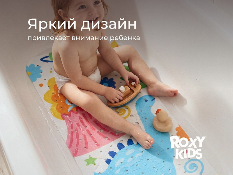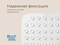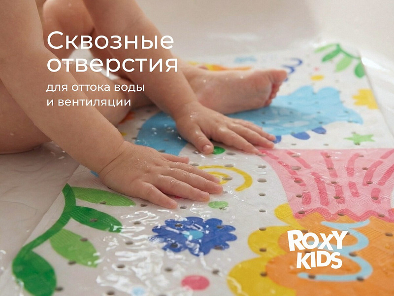 Антискользящий коврик для ванной ROXY-KIDS обеспечит комфортное и безопасное купание вашего малыша. Мягкие присоски надежно крепят коврик ко дну ванны и не дают ему скользить. Специальное покрытие с рельефными элементами препятствует скольжению ног или тела по коврику и обеспечивает массажные функции. Коврик из ПВХ полностью соответствует всем требованиям безопасности детской продукции. Оптимальный размер коврика делает его доступным для использования в любых ваннах и детских ванночках.
