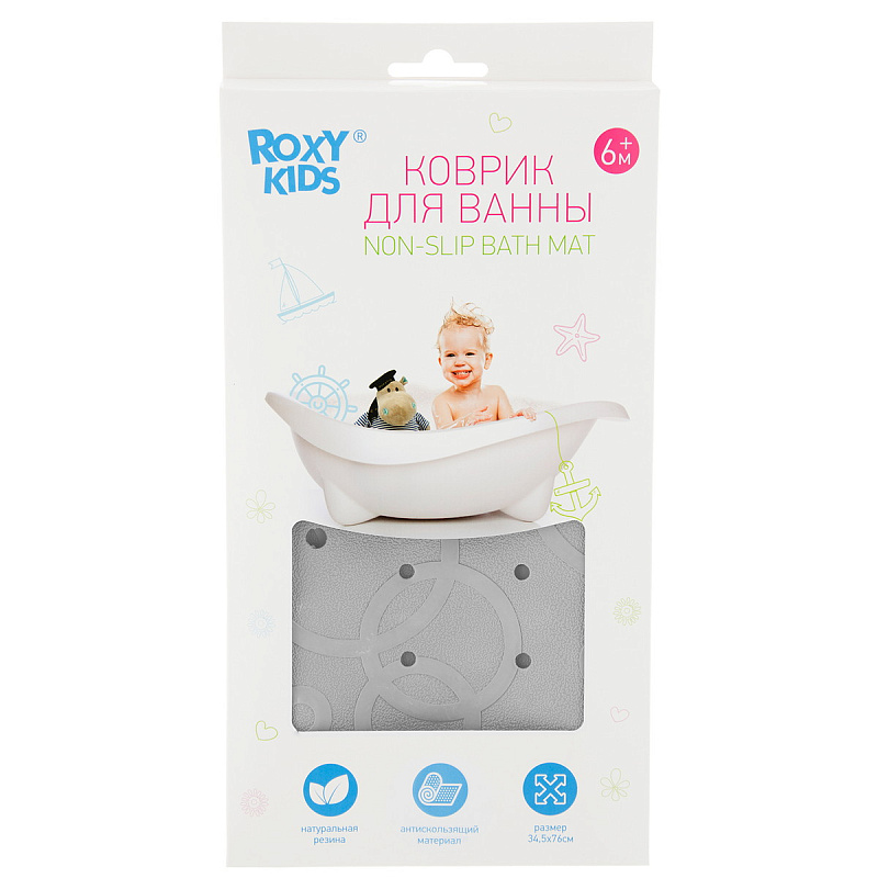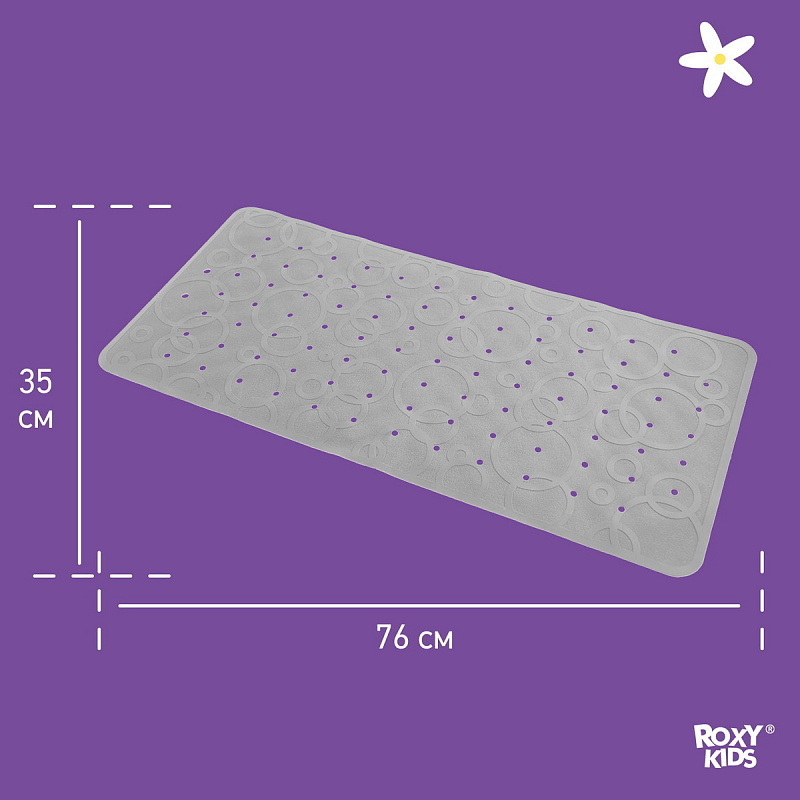 Антискользящий резиновый коврик для ванны ROXY-KIDS обеспечит комфортное и безопасное купание вашего малыша. Мягкие присоски надежно крепят коврик ко дну ванны и не дают ему скользить, как бы активно ни двигался ребенок. Специальное покрытие с рельефными элементами препятствует скольжению ног или тела по коврику и обеспечивает массажные функции. Резиновый коврик полностью соответствует всем требованиям безопасности детской продукции.