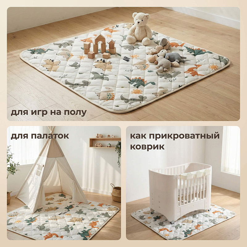 Универсальность применения делает этот нескользящий тканевый коврик незаменимым аксессуаром для родителей. Вы можете смело брать его с собой на природу, класть младенцу на пол дома, оборудовать игровой домик, детскую палатку или манеж, использовать для фотосессии новорожденных, рядом со стойкой Монтессори — ваш ребенок будет чувствовать себя комфортно и защищено везде!
