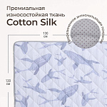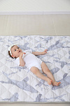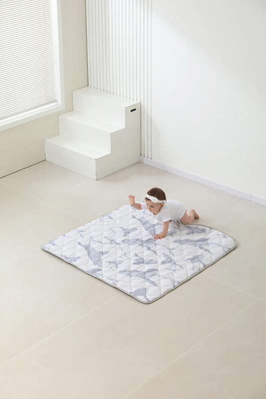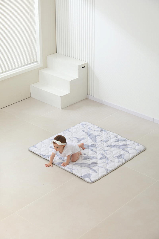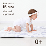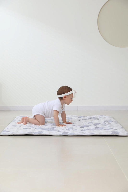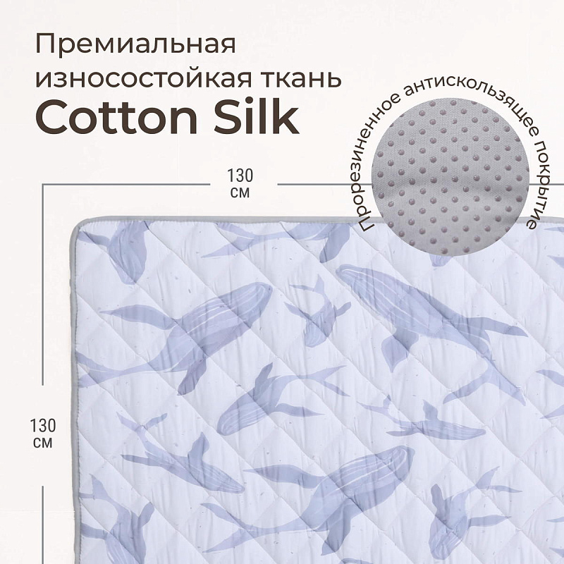 Поверхность выполнена из премиальной ткани Cotton Silk, сочетающей прочность и долговечность с приятным тактильным ощущением. Наполнителем служит 100% хлопковое волокно, обеспечивающее оптимальную толщину коврика для детей, способствующую созданию амортизации при движении крохи от 0 месяцев.