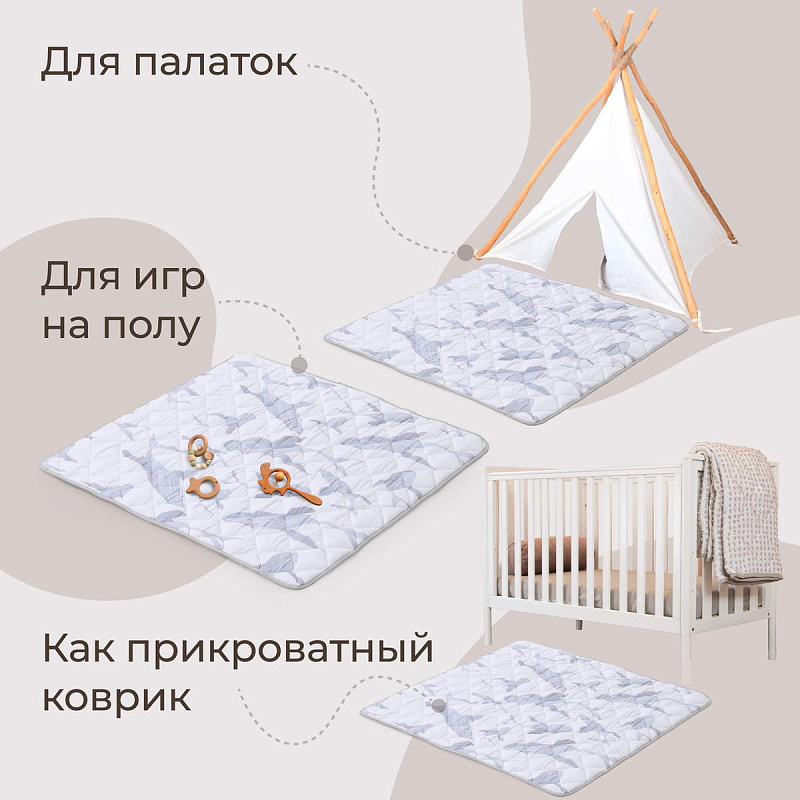 Универсальность применения делает этот нескользящий тканевый коврик незаменимым аксессуаром для родителей. Вы можете смело брать его с собой на природу, класть младенцу на пол дома, оборудовать игровой домик, детскую палатку или манеж, использовать для фотосессии новорожденных, рядом со стойкой Монтессори — ваш ребенок будет чувствовать себя комфортно и защищено везде!