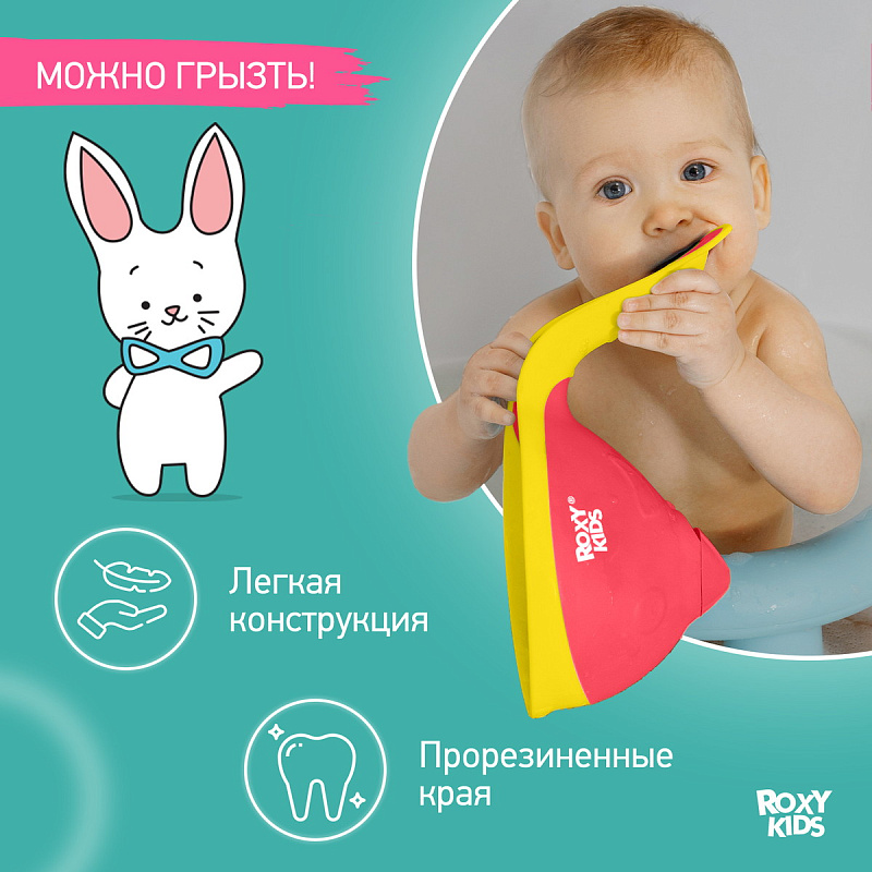 Мягкий край из гипоаллергенного термоэластопласта можно прислонить к голове малыша,чтобы вода и мыло не попали в глазки