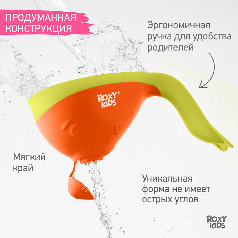 Мягкий край из гипоаллергенного термоэластопласта можно прислонить к голове малыша,чтобы вода и мыло не попали в глазки
