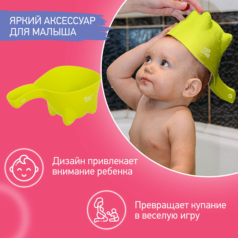 Ковшик Roxy-Kids Dino Safety Scoop для мытья головы RBS-003-GR зеленый
