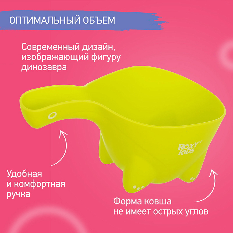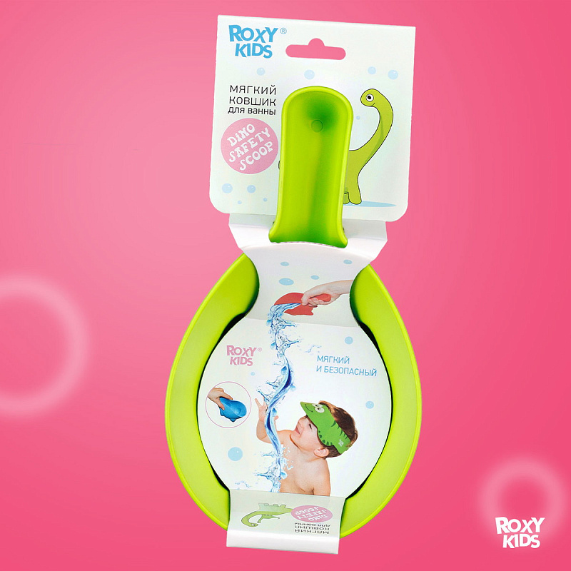 Мягкий ковшик для ванны DINO SAFETY SCOOP от ROXY-KIDS - лучший помощник для купания ребенка, а еще его веселый друг. Можно поливать себя водой из яркого динозаврика, запустить ковшик плавать в ванной — купание превращается в забавную и интересную игру. Ковшик выполнен из высококачественного полипропилена, который абсолютно безвреден для малыша. Удобная и комфортная ручка не убежит из мокрых ладошек.