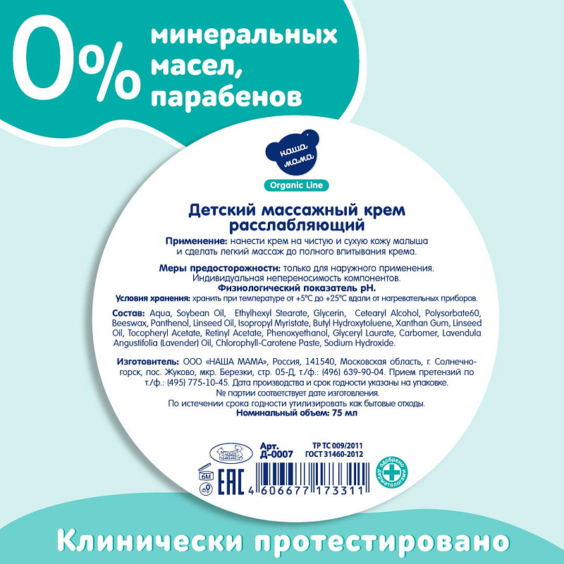 Крем Наша мама Organic Line, 75 мл массажный расслабляющий