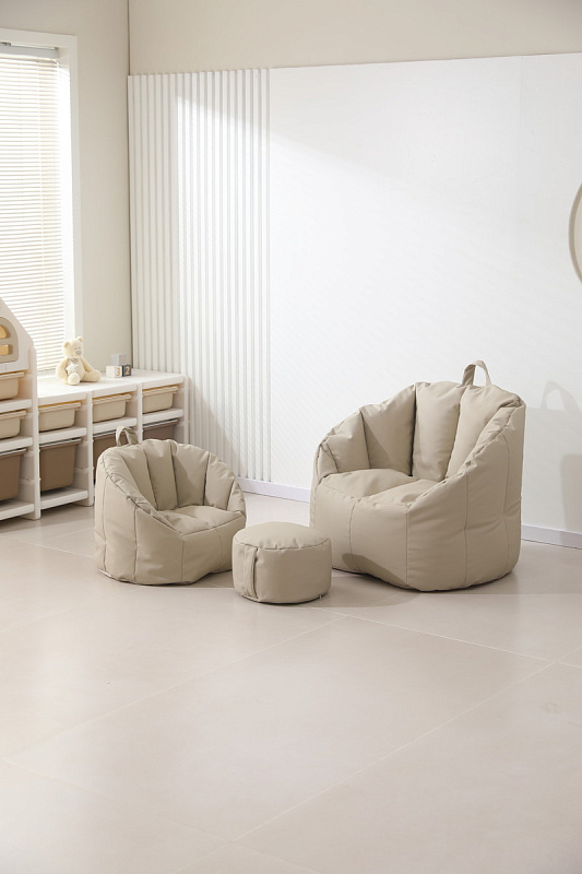 Кресло пуф имеет мягкую ручку для удобной транспортировки, позволяющую родителям легко переносить изделие одной рукой. Благодаря легкому весу в 1,5 кг, он становится идеальным аксессуаром в путешествиях и на прогулках, отдыхе на пляже, пикнике или поездке на дачу.