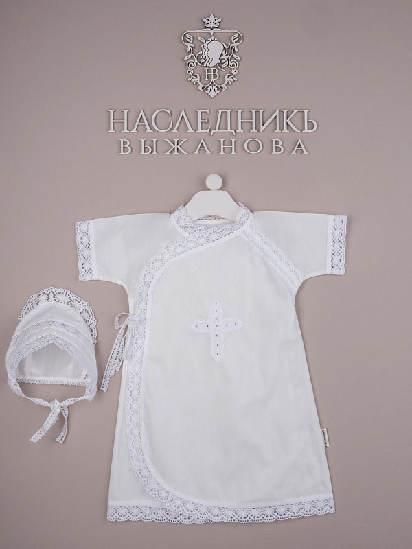 Крестильный набор НаследникЪ Выжанова (рубашка+чепчик) КР-3 белый 68