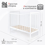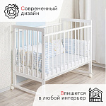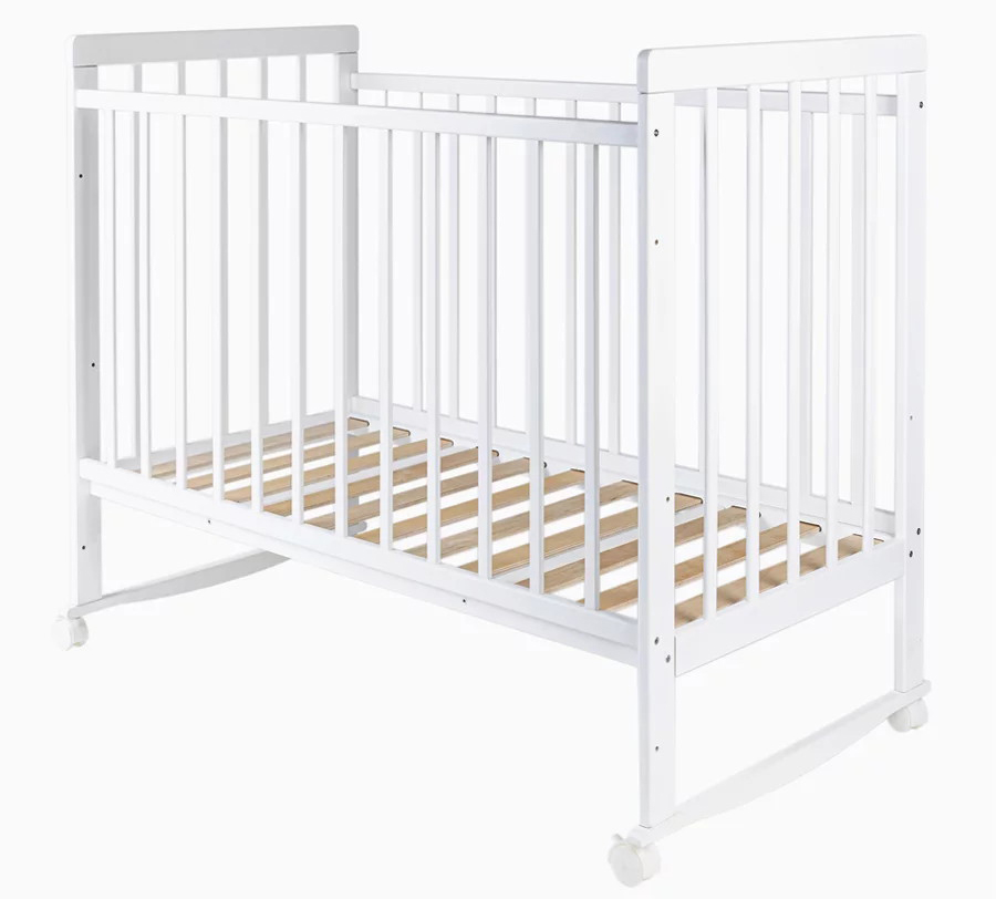 Для укачивания малыша в кроватке предусмотрены полозья, на которые в дальнейшем можно установить роликовые колеса с фиксаторами для удобства перемещения кровати по комнате.