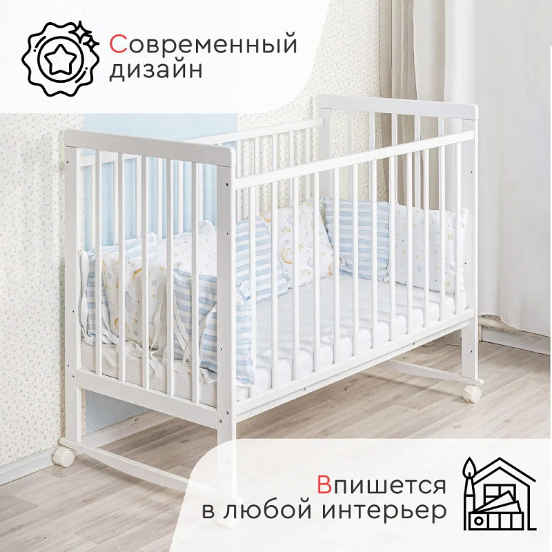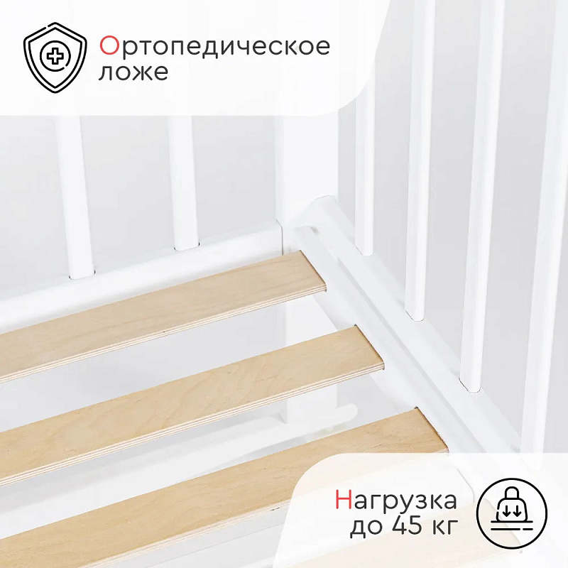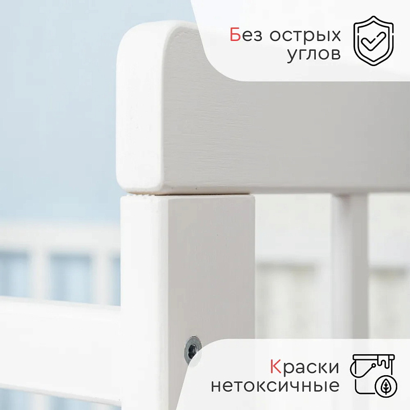 Надежный каркас и сглаженные углы бортиков кроватки обеспечат максимальную безопасность ребенка во время сна.