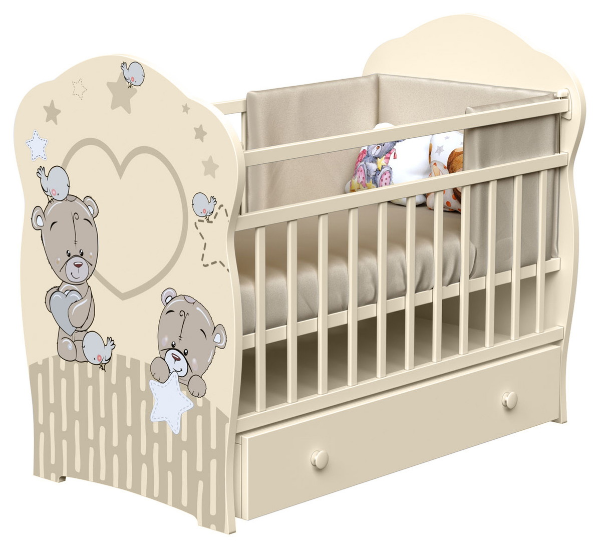 Кровать детская VDK Forever friеnds поперечный маятник, с ящ слоновая кость