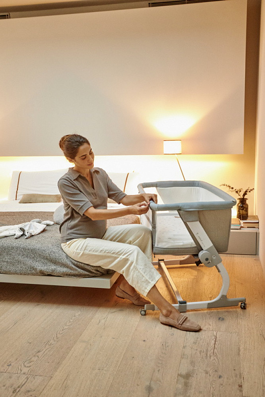 - Система блокировки противодействует любым рискам того, что кроватка отодвинется от кровати родителей